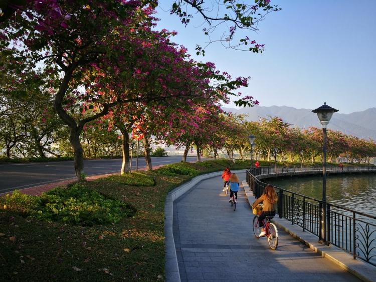 肇庆星湖绿道环绕风光秀丽的星湖国家级风景名胜区而建,沿线串连波海公园、伴月湖公园、星湖湾公园、牌坊公园和七星岩牌坊广场、东门广场、北门广场,整个环湖绿道分为四个生态休闲环,形成独有的环湖、观景、休闲特色,全长19.1公里,被中国城市竞争力研究会授予“中国最美的绿道”称号。