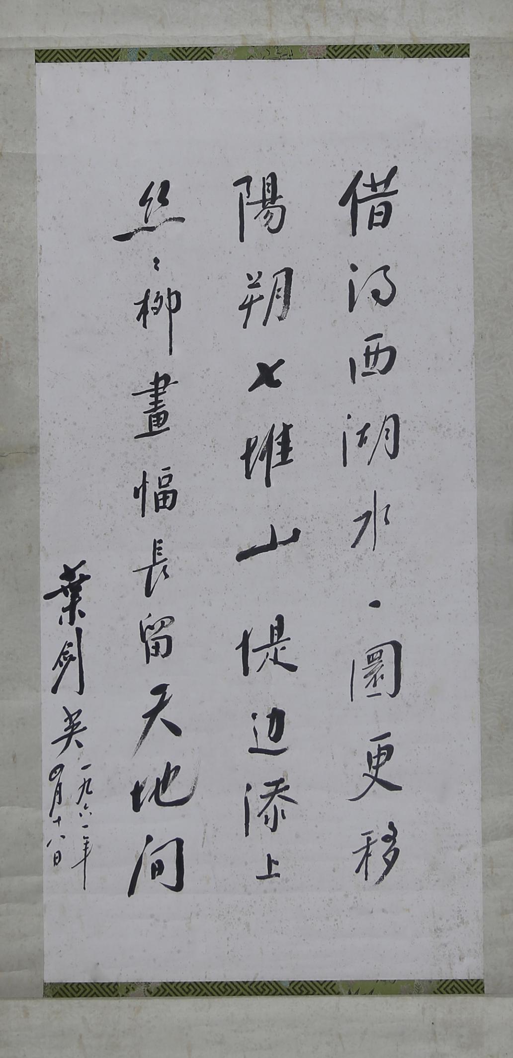 简介 : 该作品为纸本,立轴。是 诗人于 1961年游览广东肇庆七星岩后所赋。字体峻秀挺拔,实如其人。