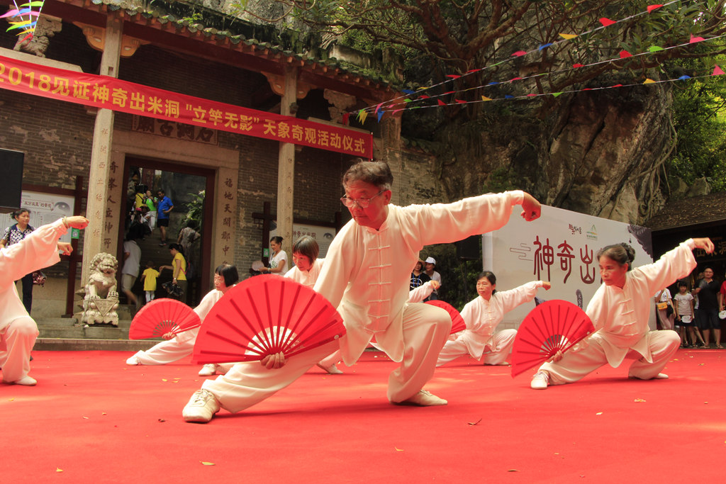 肇庆星湖出米洞每年夏至前后约10天都会出现两次的太阳直射,从6月11日开始,太阳第一次直射肇庆“出米洞”,南方的农作物(稻穗)一片墨绿。6月21日(或22日)夏至日直至到7月1日(或2日),太阳直射到北回归线,也就是最北端,出米洞再次迎来太阳直射,稻谷从微黄转向成熟。