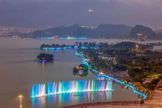 好消息!好消息! 经过这段时间给力的雨水, 星湖水位已达4.8米, 牌坊音乐喷泉恢复播放啦!