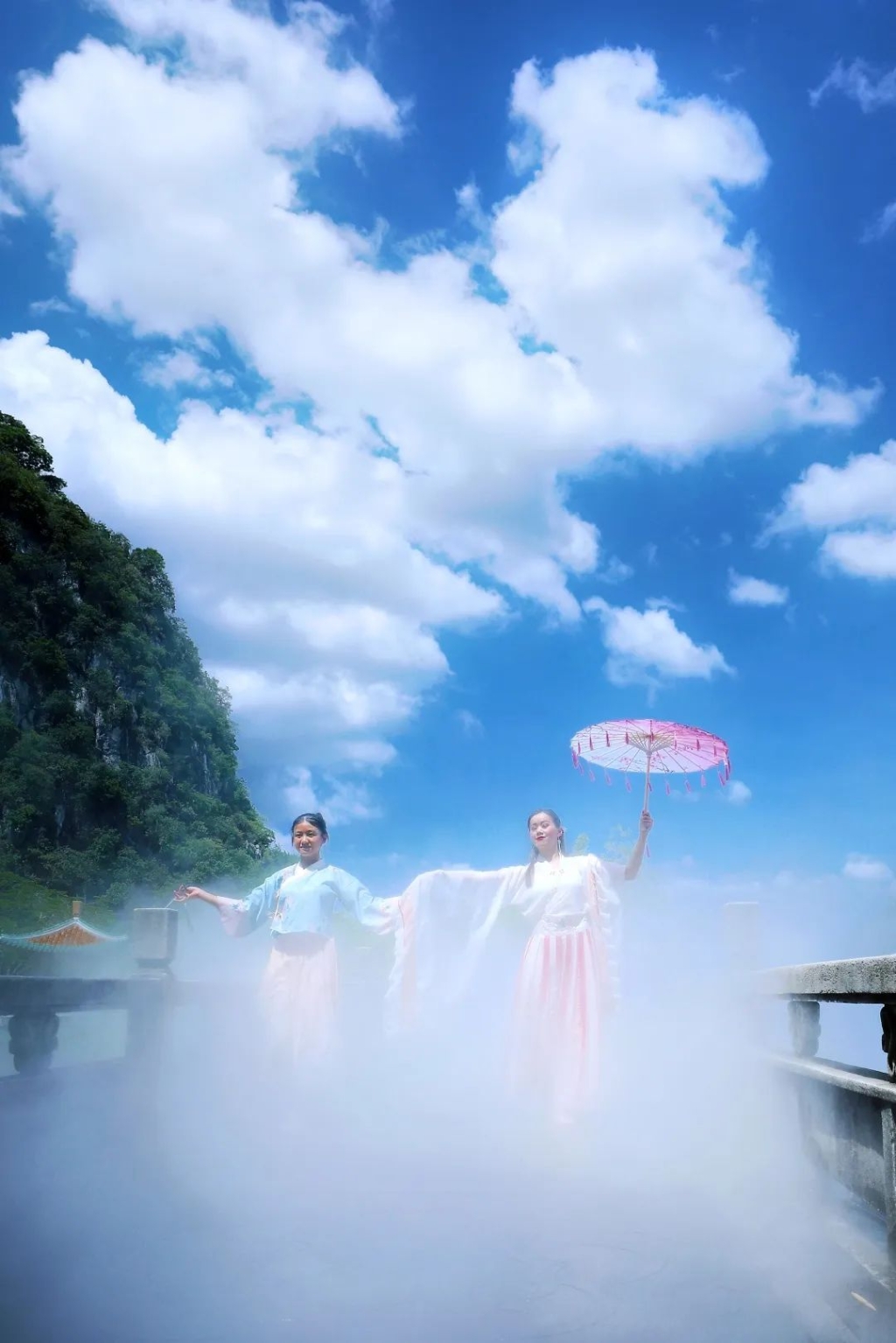 穿上汉服,碎步轻移, 乘一叶竹筏,驶入红莲深入, 夏日薰风拂过, 片片荷叶在水雾的萦绕下, 如簇拥着...