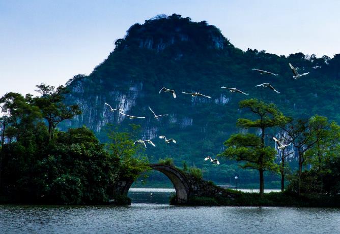 “卧佛含丹”是肇庆星湖新十景之一,每年临近春分或秋分前后,晴天的傍晚日落之时,人们站在星湖国家湿地公...