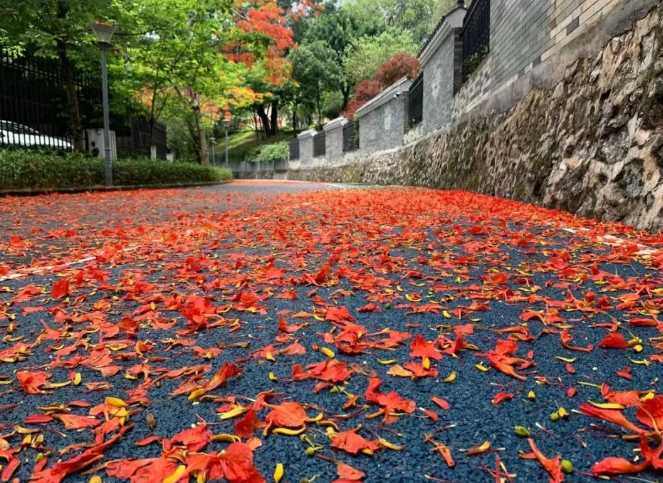 雨中星湖的凤凰花 一路延伸 向那云水相接的天际