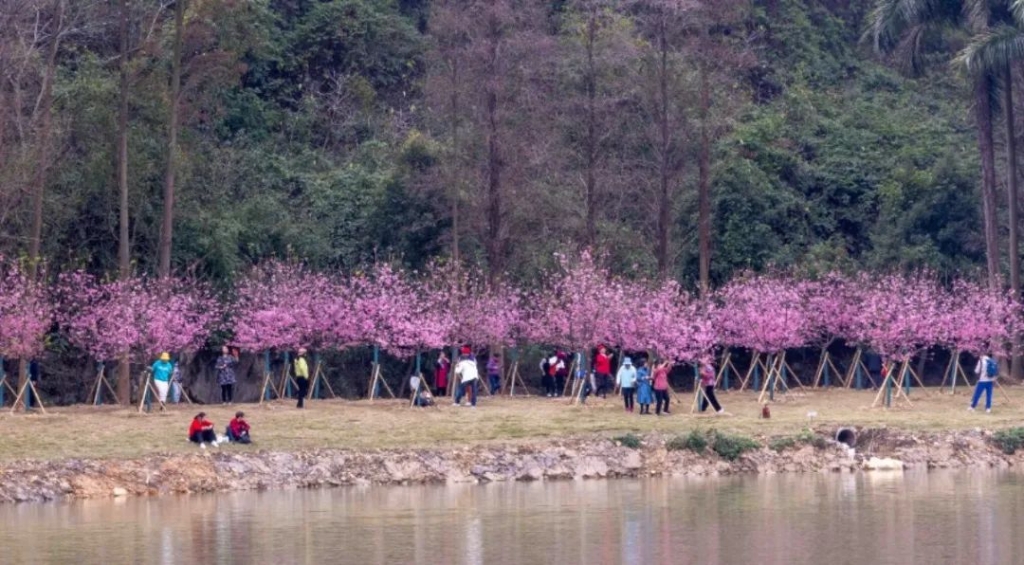 十里宫粉紫荆长堤 春赠星湖一寸柔情 星湖还春连连花路 在春意盎然的七星岩里 藏了一道十里的粉红色浪漫