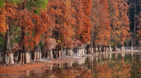 落羽杉红透了!肇庆星湖冬日斑斓美如油画!