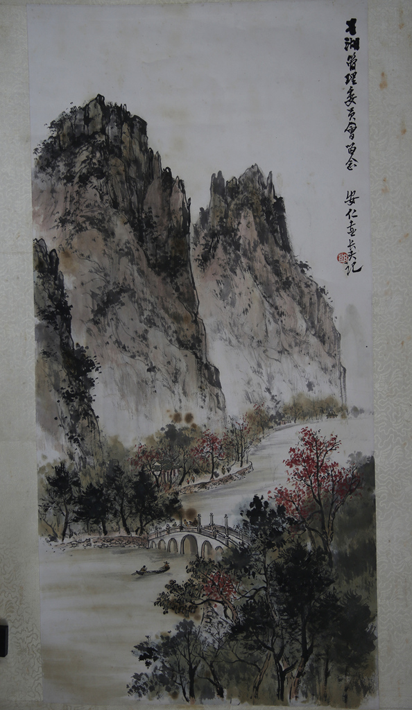 名称:李国华、黄安仁、邓长夫三人合作 星湖一角山水图轴